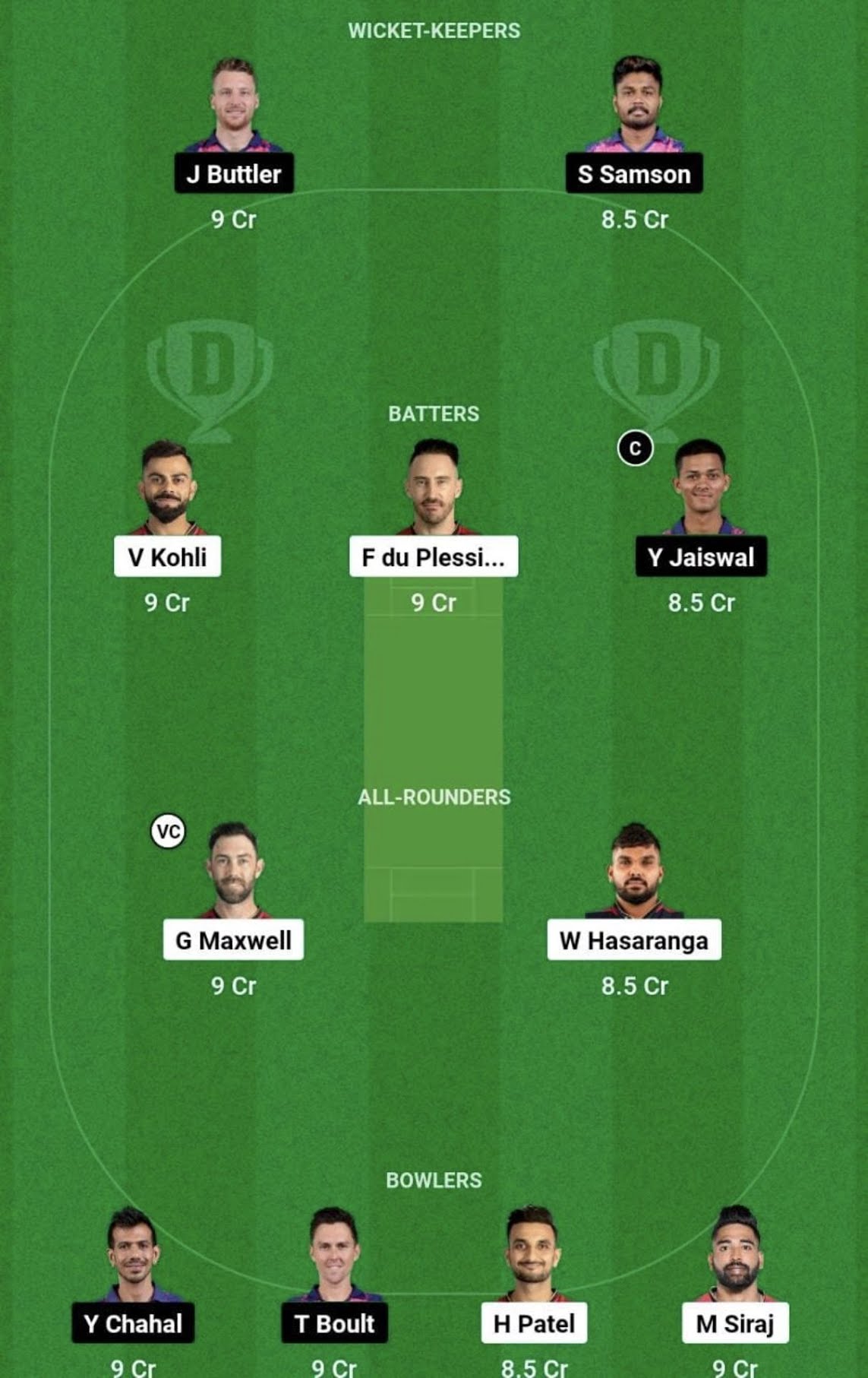 RCB vs RR Dream11 Team Small League