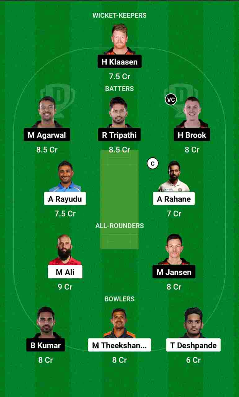 CHE vs SRH Dream11 Team For Grand League